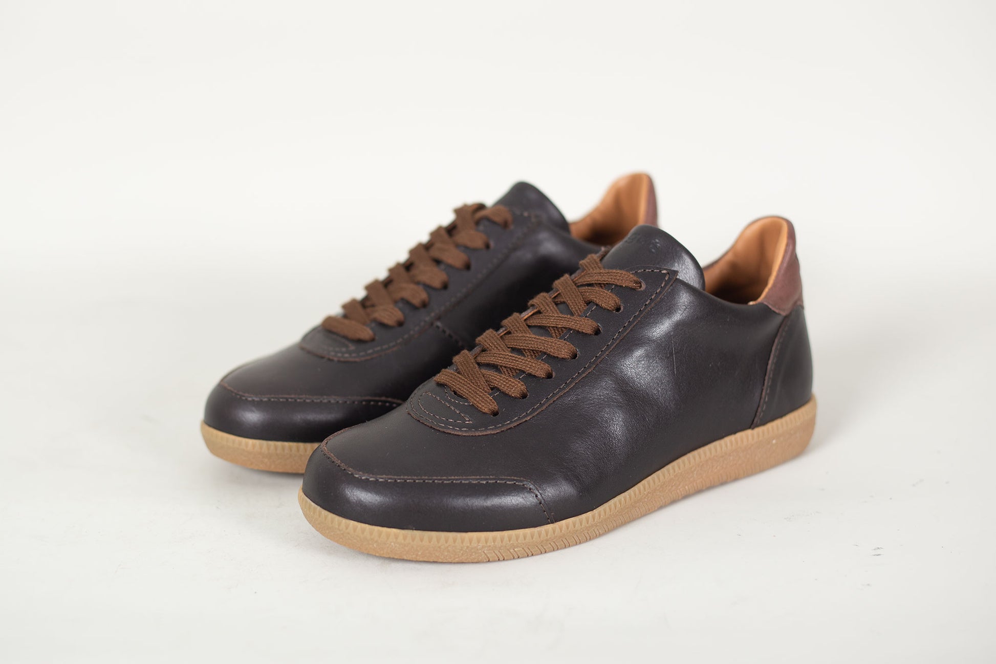 Pivot is built on a vintage 1970s sneaker last that we have modified slightly to make space for an Ortholite insole to improve comfort and performance. Made in waxy full grain leather from Portugal with Italian lining on an e-rubber sole.