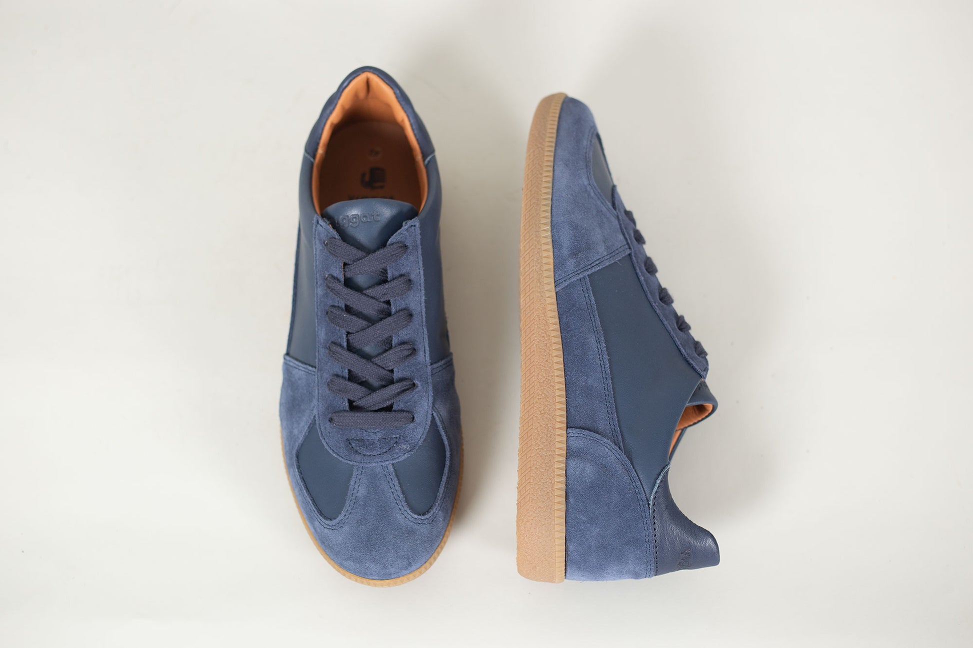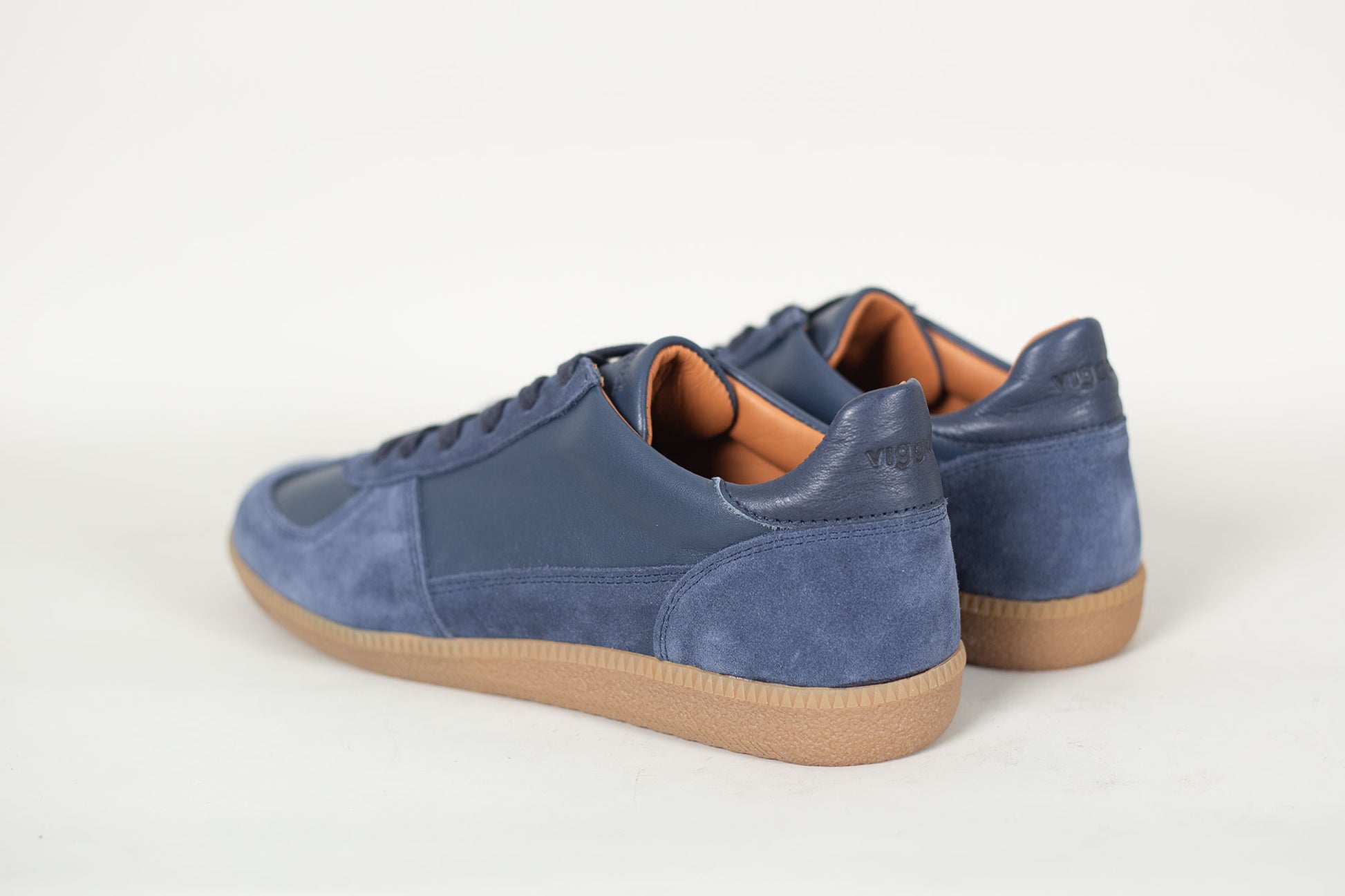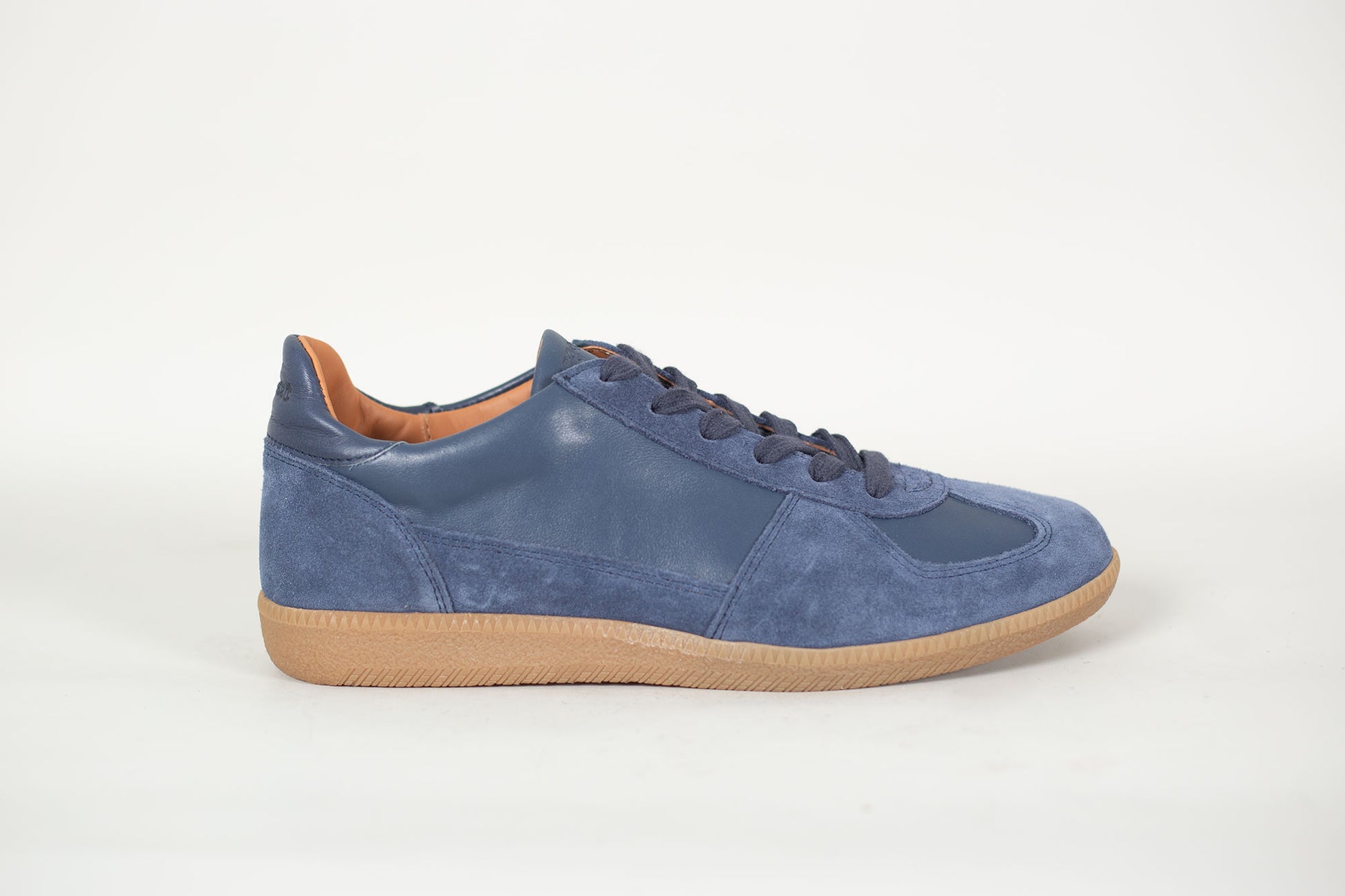 Fixo is built on a vintage 1970s sneaker last that we have modified slightly to make space for an Ortholite insole to improve comfort and performance. Made in a mix of Italian blue suede and full grain nappa leather with Italian brown calf lining on an e-rubber sole.