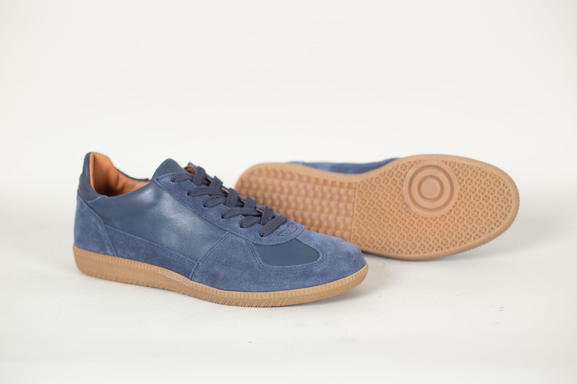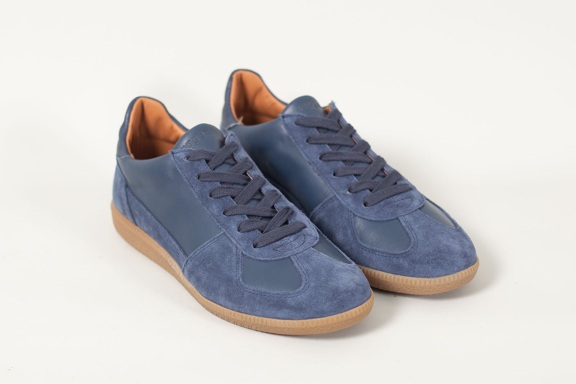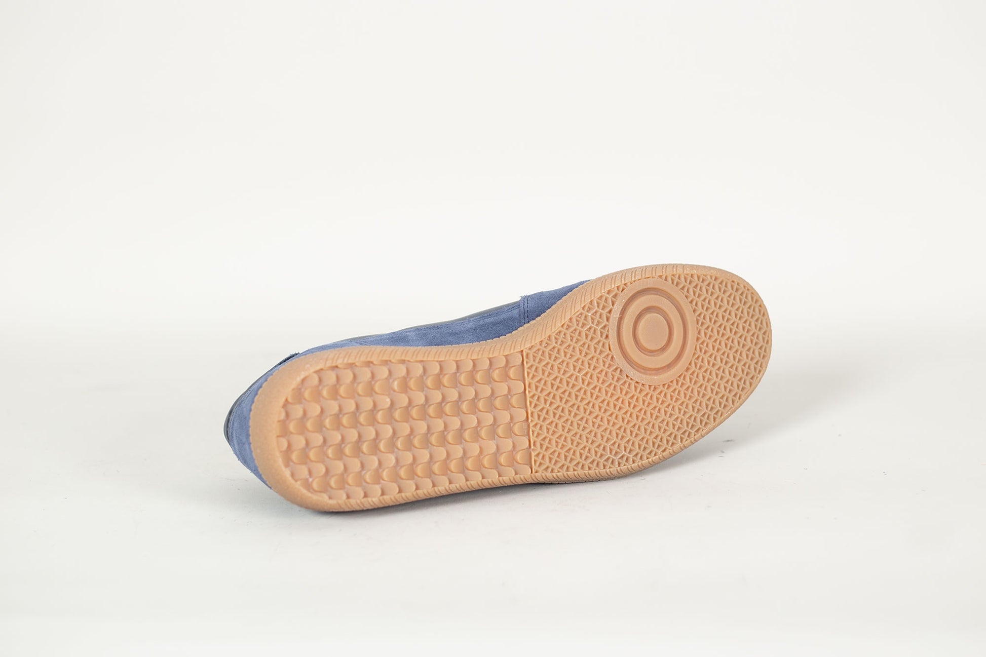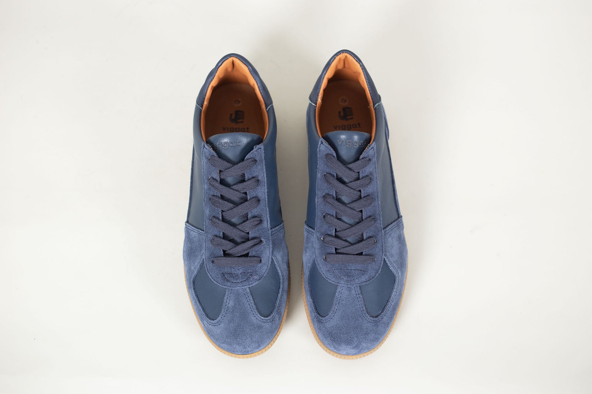Fixo is built on a vintage 1970s sneaker last that we have modified slightly to make space for an Ortholite insole to improve comfort and performance. Made in a mix of Italian blue suede and full grain nappa leather with Italian brown calf lining on an e-rubber sole.